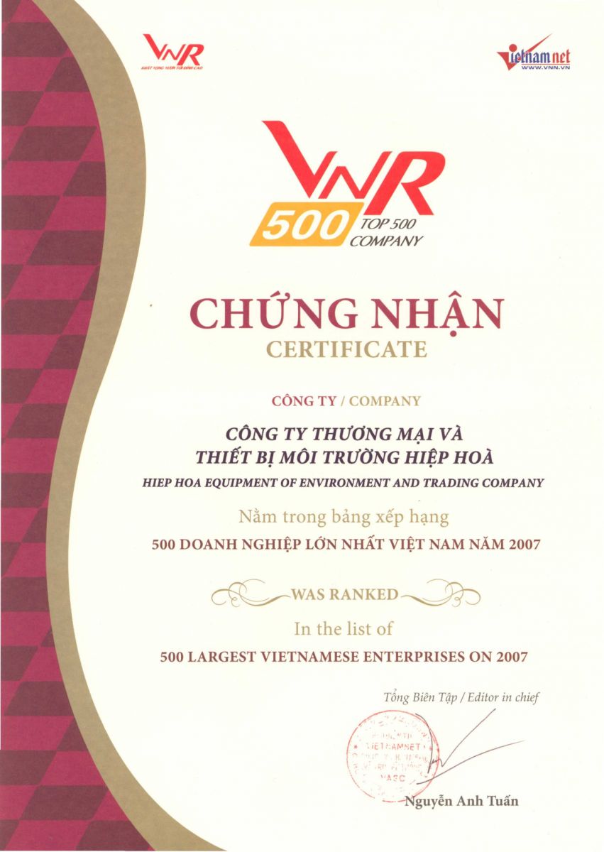 Năm 2007, Công ty đã được chứng nhận nằm trong danh sách 500 doanh nghiệp lớn nhất Việt Nam.